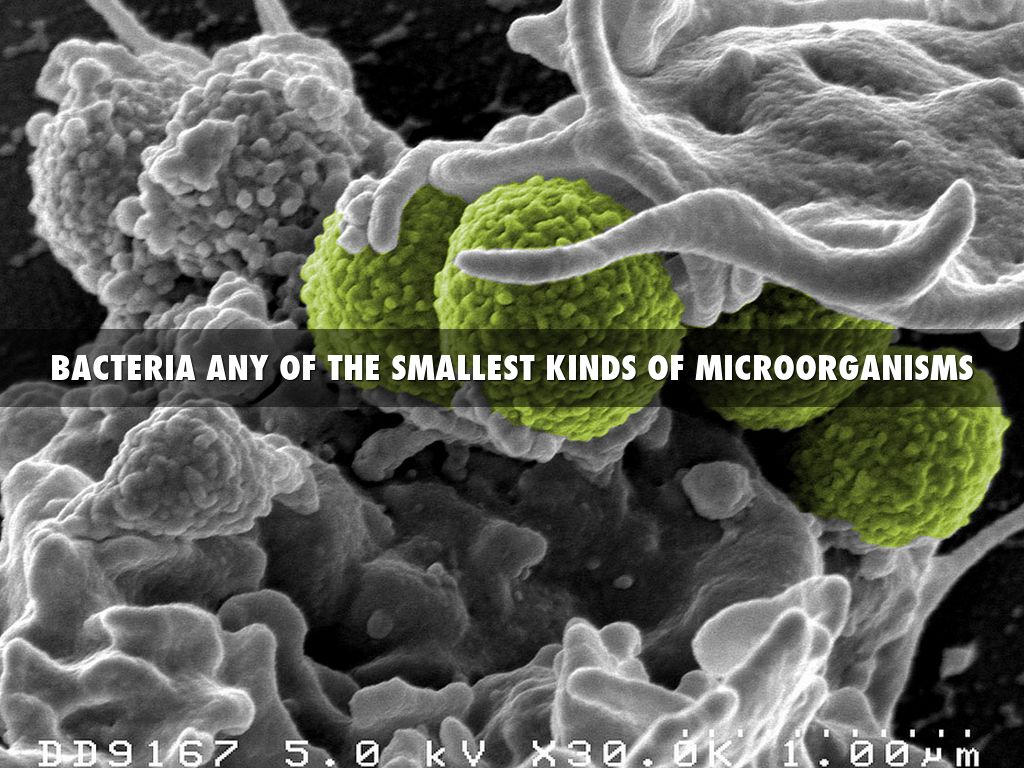 BACTERIA ANY OF THE SMALLEST KINDS OF MICROORGANISMS
