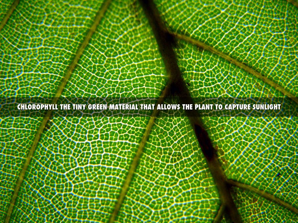 CHLOROPHYLL THE TINY GREEN MATERIAL THAT ALLOWS THE PLANT TO CAPTURE SUNLIGHT