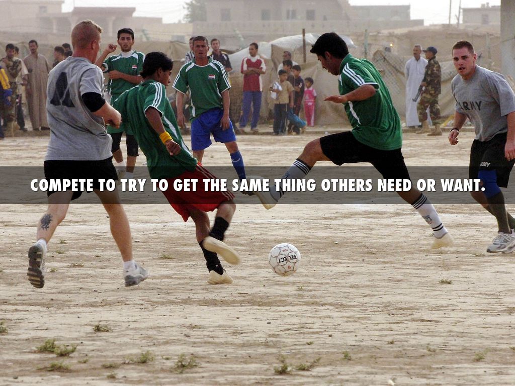 COMPETE TO TRY TO GET THE SAME THING OTHERS NEED OR WANT.