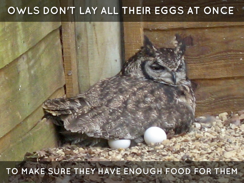 OWLS DON'T LAY ALL THEIR EGGS AT ONCE