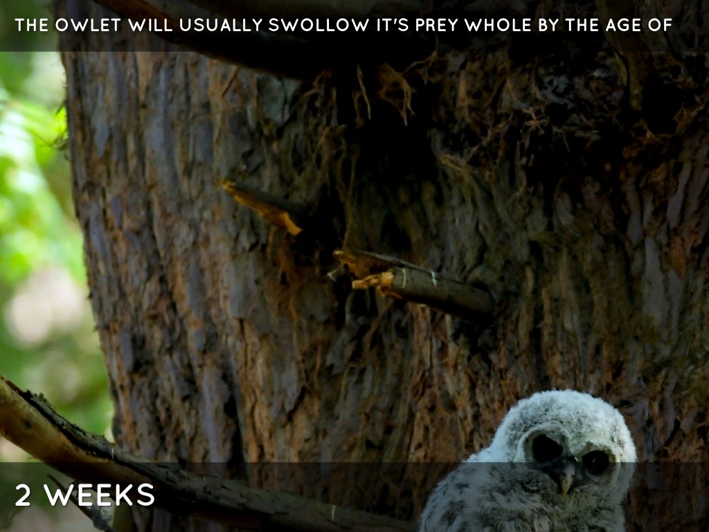THE OWLET WILL USUALLY SWOLLOW IT'S PREY WHOLE BY THE AGE OF