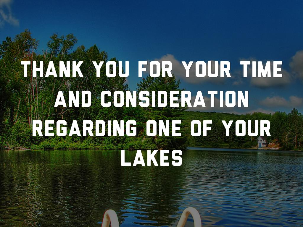 Thank you for your time and consideration regarding one of your lakes