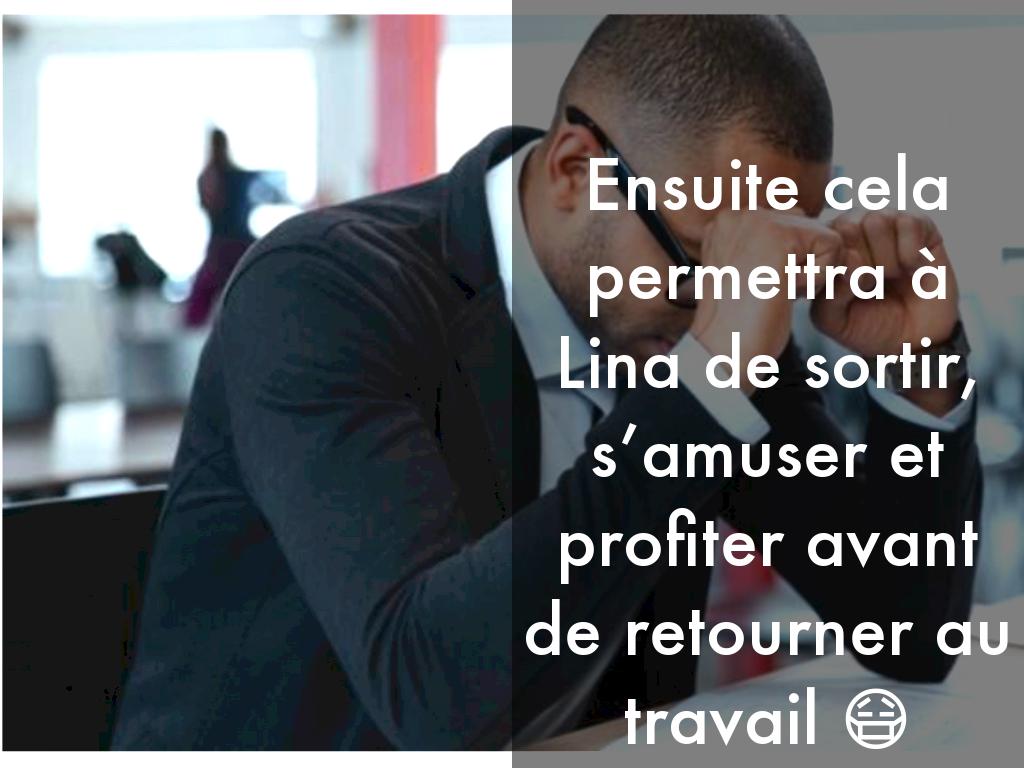 Ensuite cela permettra à Lina de sortir, s’amuser et profiter avant de retourner au travail 😷