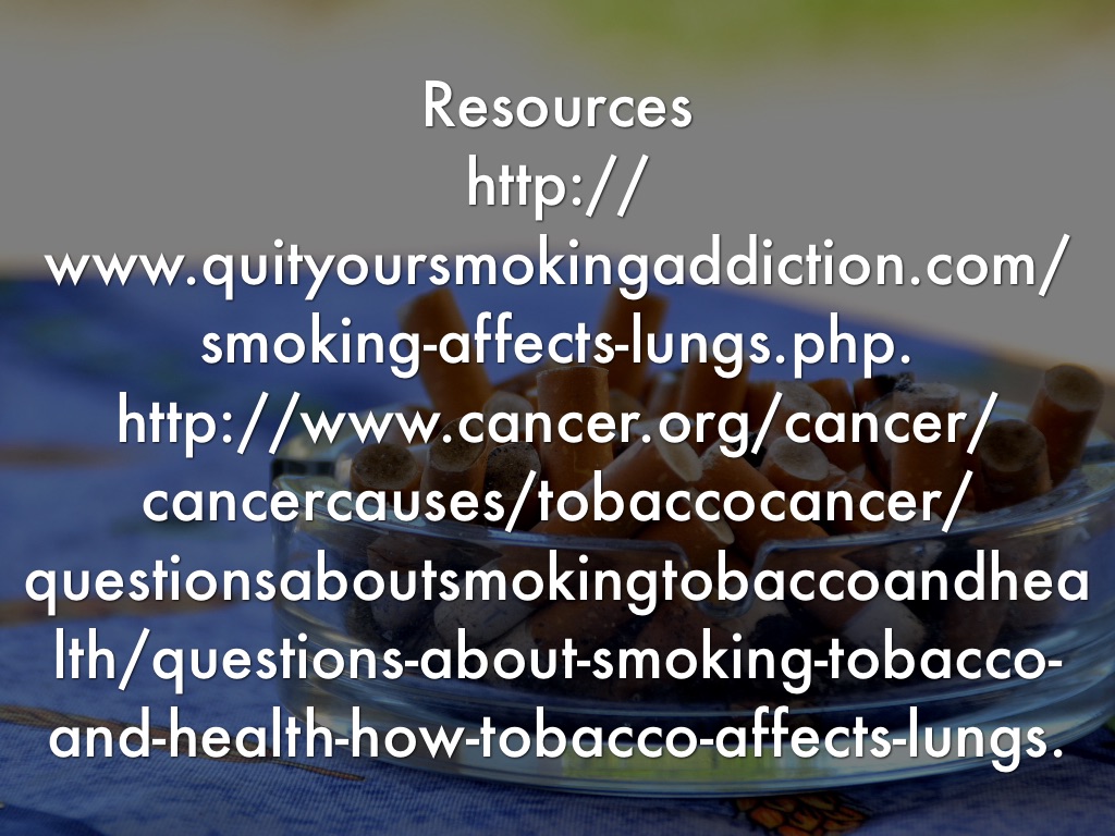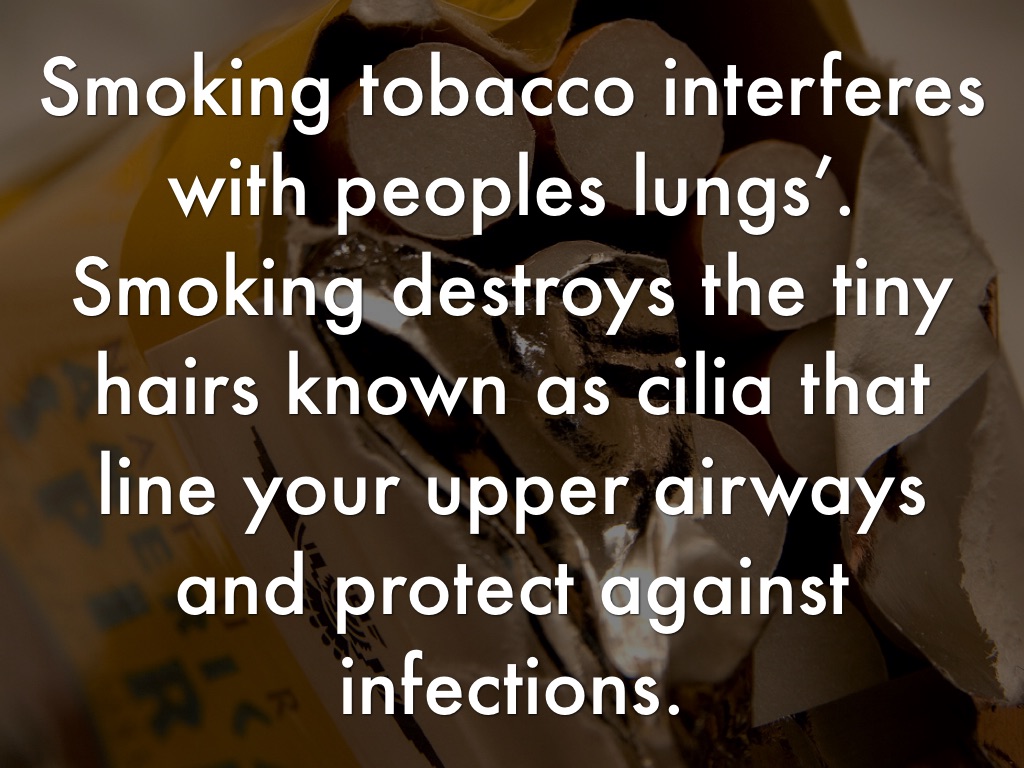 Smoking tobacco interferes with peoples lungs’. Smoking destroys the tiny hairs known as cilia that line your upper airways and protect against infections.