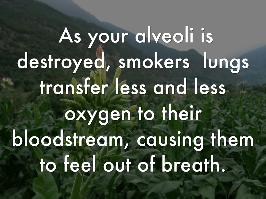 As your alveoli is destroyed, smokers lungs transfer less and less oxygen to their bloodstream, causing them to feel out of breath.