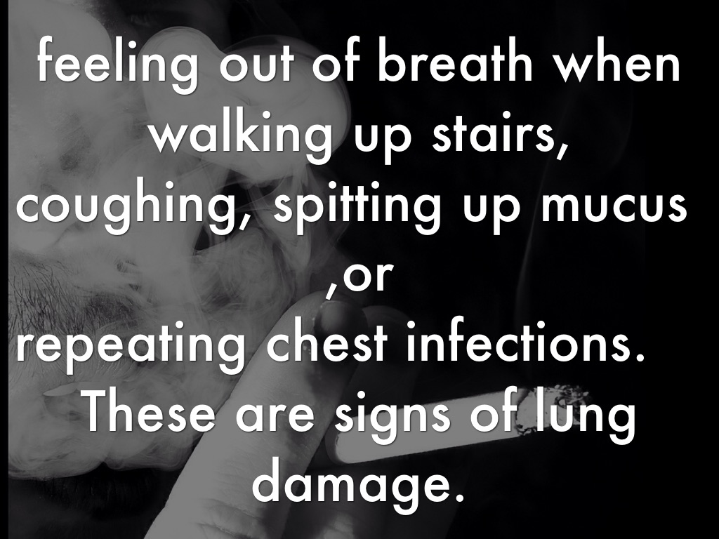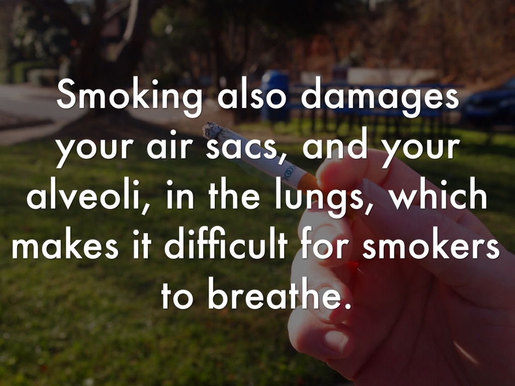 Smoking also damages your air sacs, and your alveoli, in the lungs, which makes it difficult for smokers to breathe.