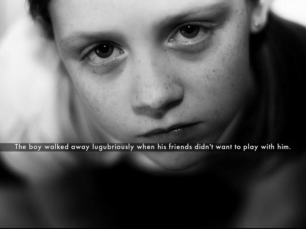 The boy walked away lugubriously when his friends didn't want to play with him.