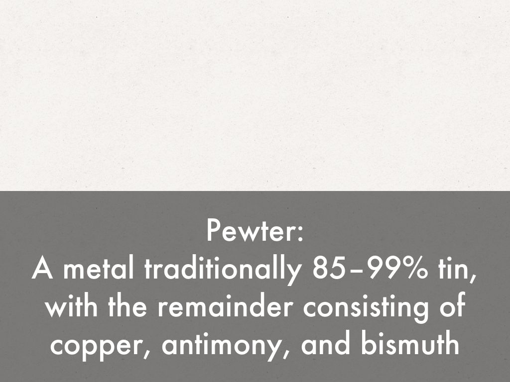 A metal traditionally 85–99% tin, with the remainder consisting of copper, antimony, and bismuth