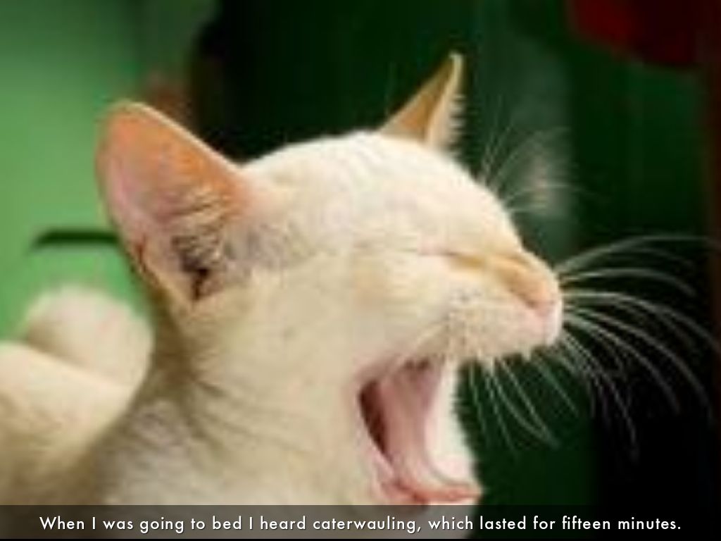 When I was going to bed I heard caterwauling, which lasted for fifteen minutes.