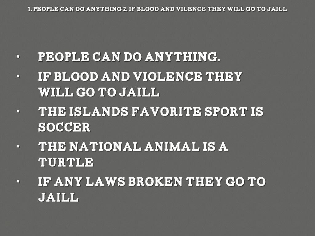 1. PEOPLE CAN DO ANYTHING 2. IF BLOOD AND VILENCE THEY WILL GO TO JAILL