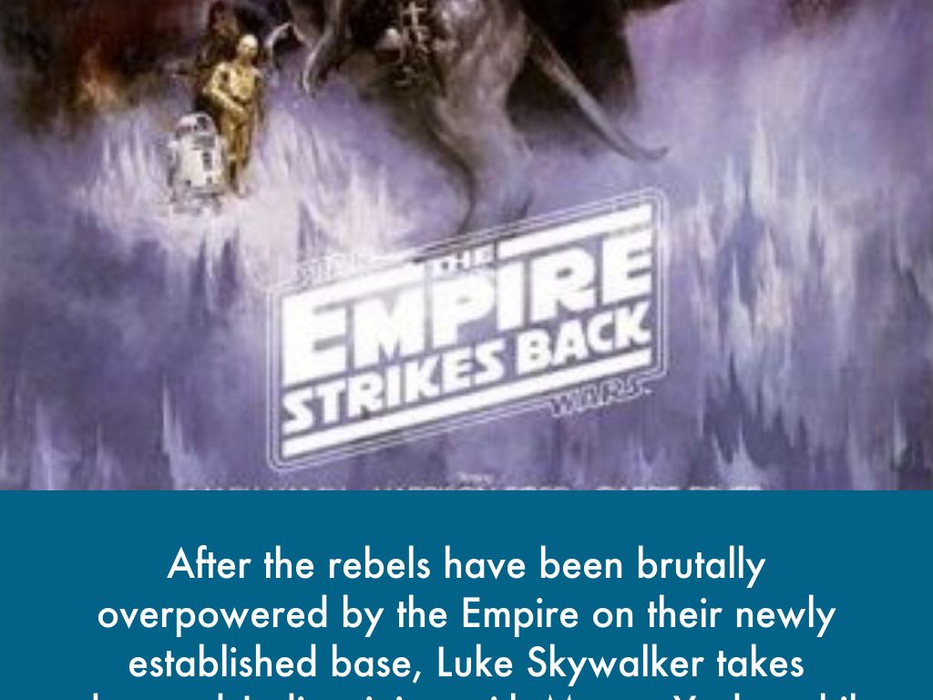 After the rebels have been brutally overpowered by the Empire on their newly established base, Luke Skywalker takes advanced Jedi training with Master Yoda, while his friends are pursued by Darth Vader as part of his plan to capture Luke.