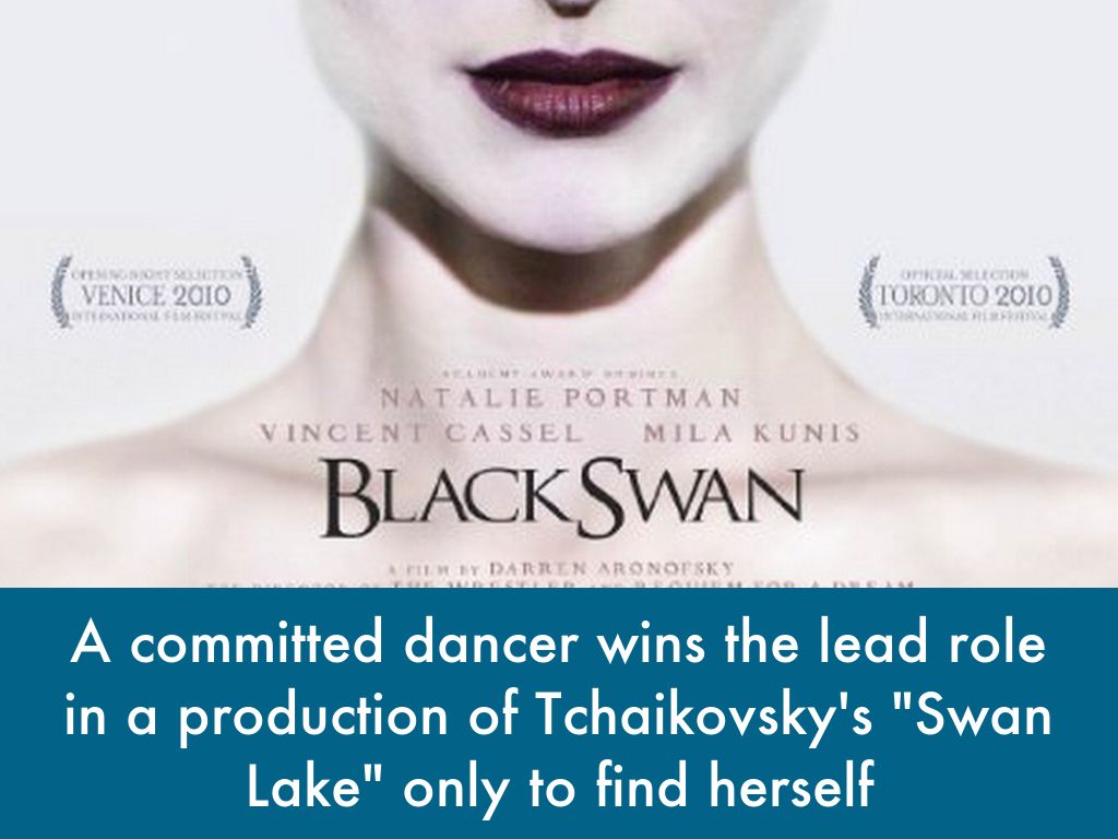 A committed dancer wins the lead role in a production of Tchaikovsky's "Swan Lake" only to find herself