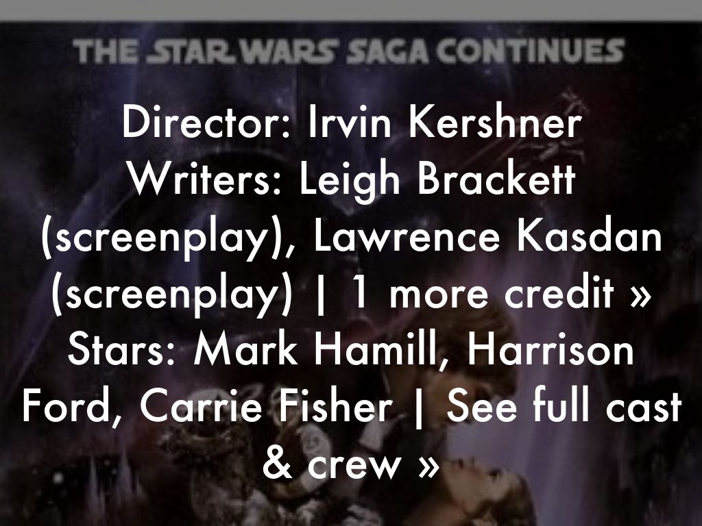 Writers: Leigh Brackett (screenplay), Lawrence Kasdan (screenplay) | 1 more credit »