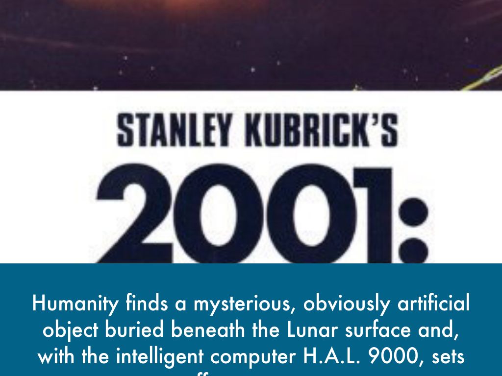 Humanity finds a mysterious, obviously artificial object buried beneath the Lunar surface and, with the intelligent computer H.A.L. 9000, sets off on a quest.