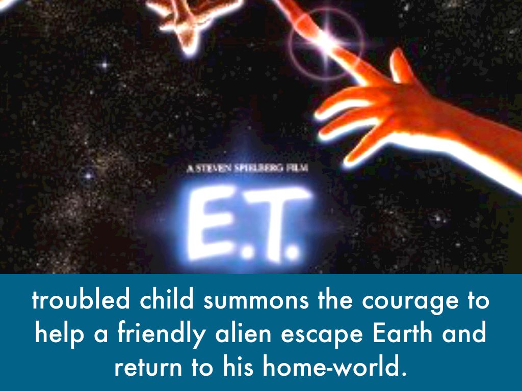 troubled child summons the courage to help a friendly alien escape Earth and return to his home-world.