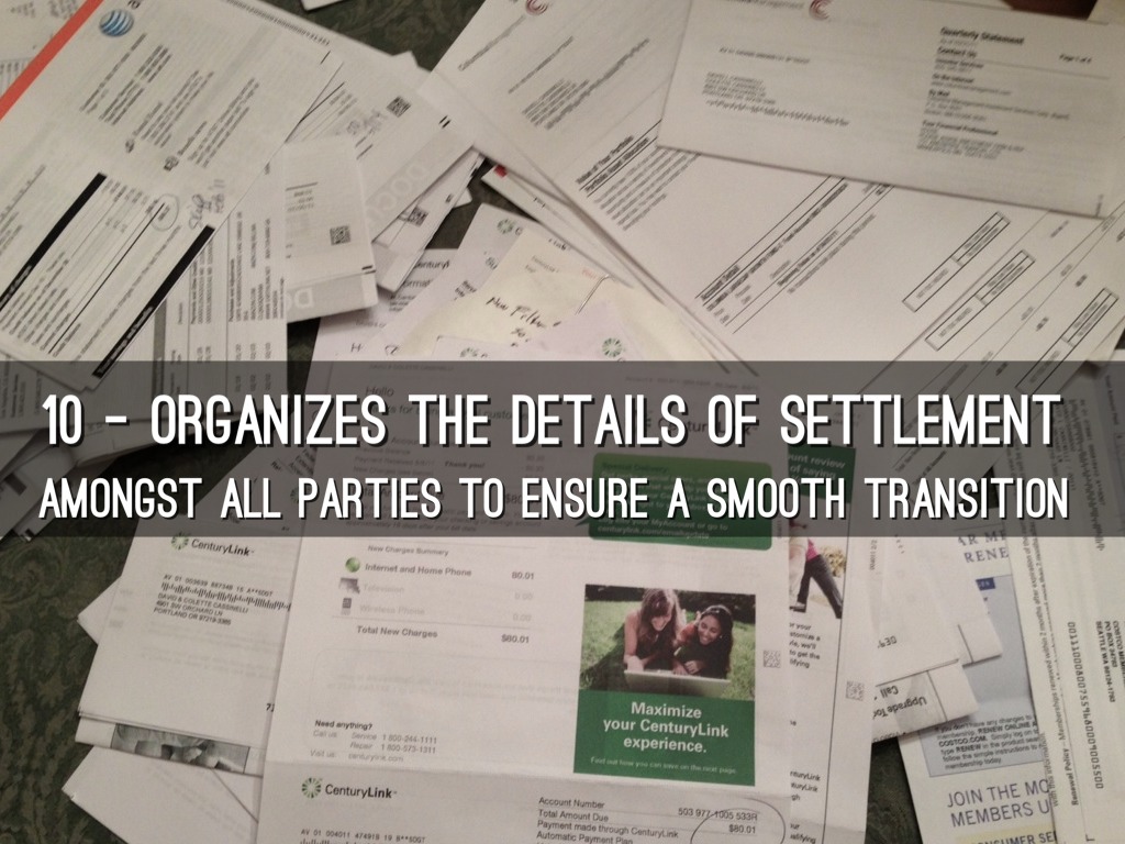 10 - ORGANIZES THE DETAILS OF SETTLEMENT