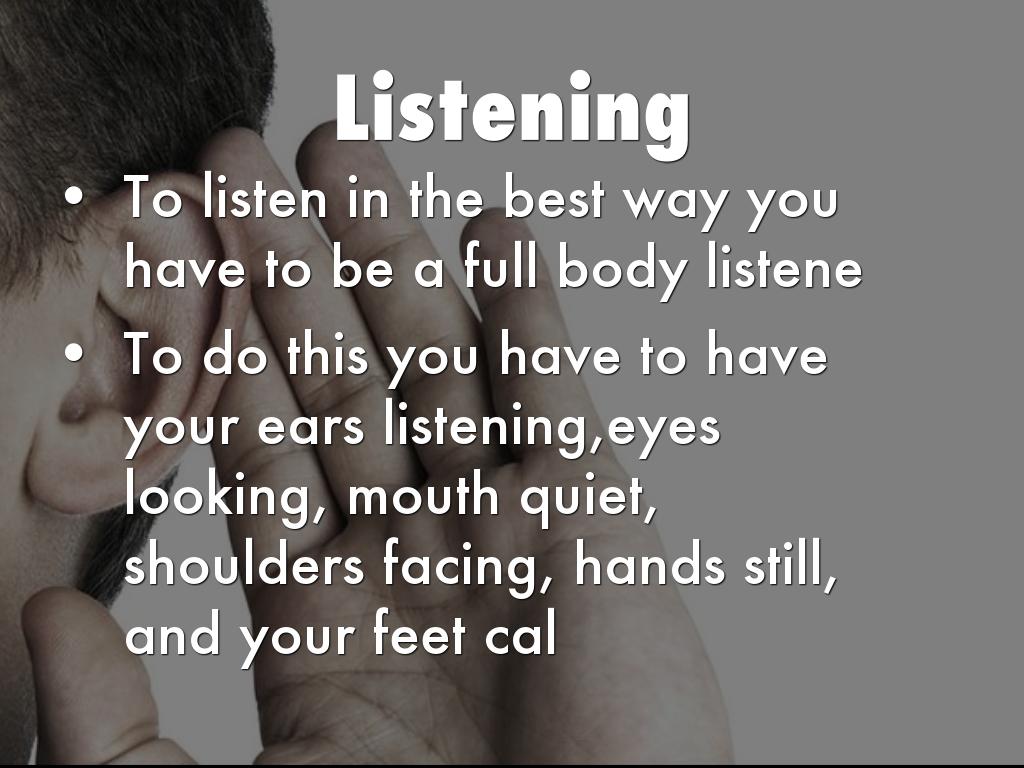 To do this you have to have your ears listening,eyes looking, mouth quiet, shoulders facing, hands still, and your feet cal