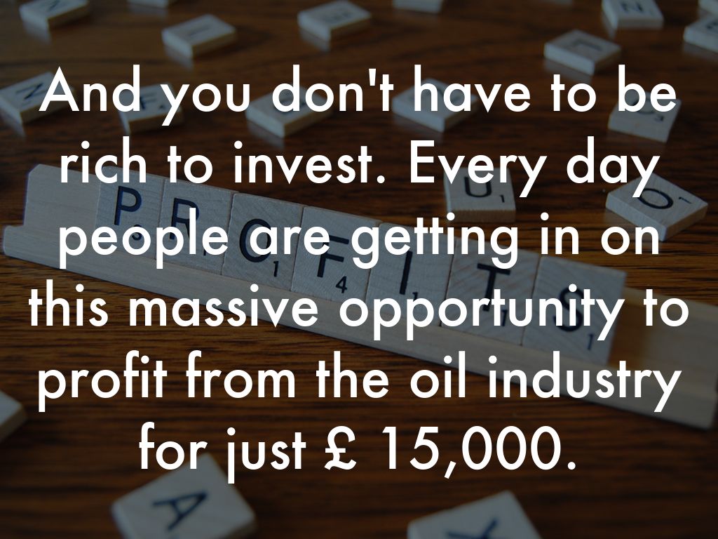And you don't have to be rich to invest. Every day people are getting in on this massive opportunity to profit from the oil industry for just £ 15,000.