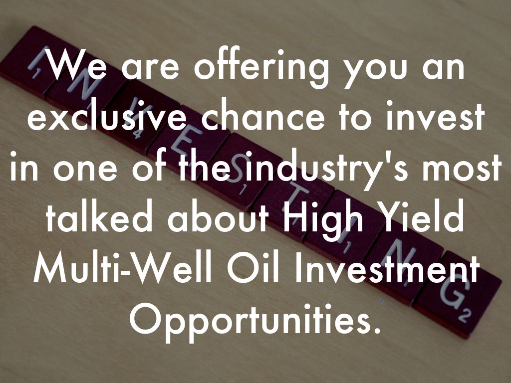 We are offering you an exclusive chance to invest in one of the industry's most talked about High Yield Multi-Well Oil Investment Opportunities.
