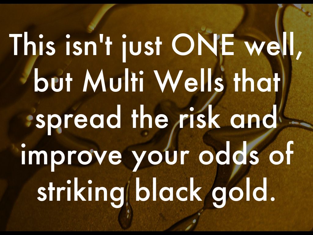 This isn't just ONE well, but Multi Wells that spread the risk and improve your odds of striking black gold.