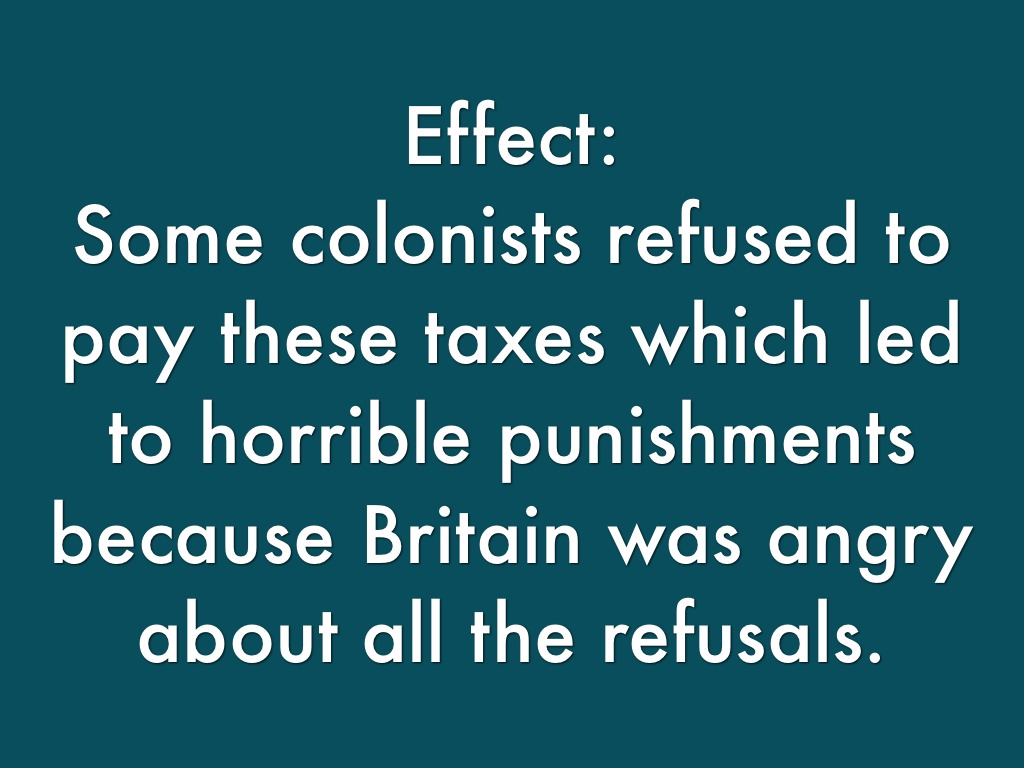Some colonists refused to pay these taxes which led to horrible punishments because Britain was angry about all the refusals.
