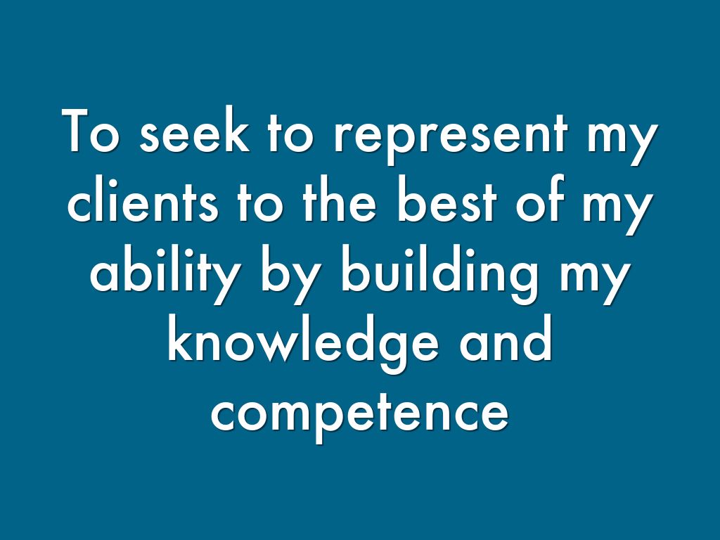 To seek to represent my clients to the best of my ability by building my knowledge and competence