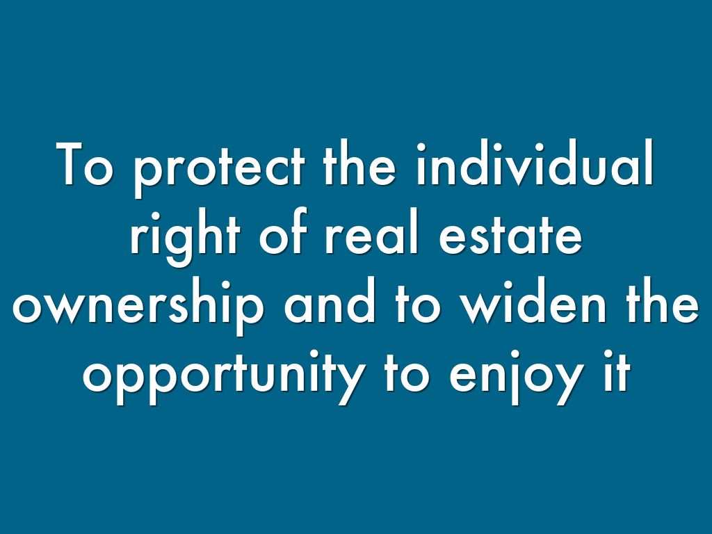 To protect the individual right of real estate ownership and to widen the opportunity to enjoy it