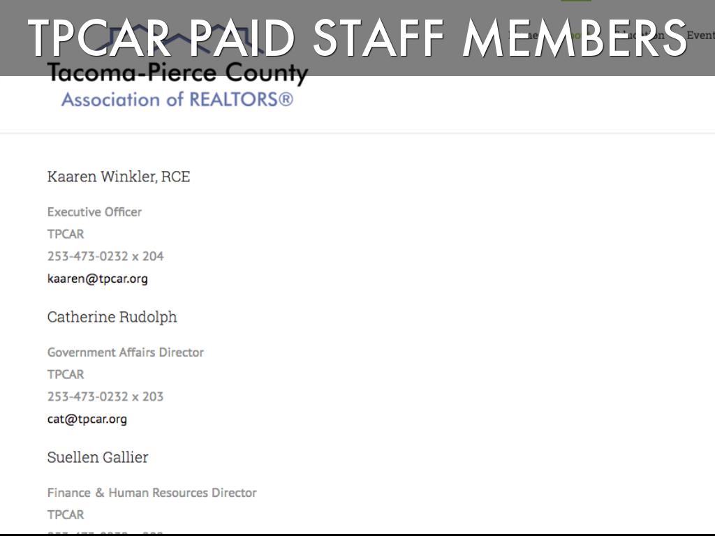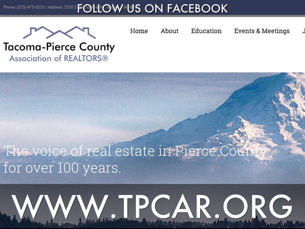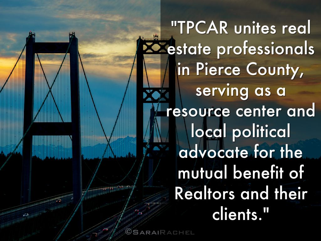 "TPCAR unites real estate professionals in Pierce County, serving as a resource center and local political advocate for the mutual benefit of Realtors and their clients."
