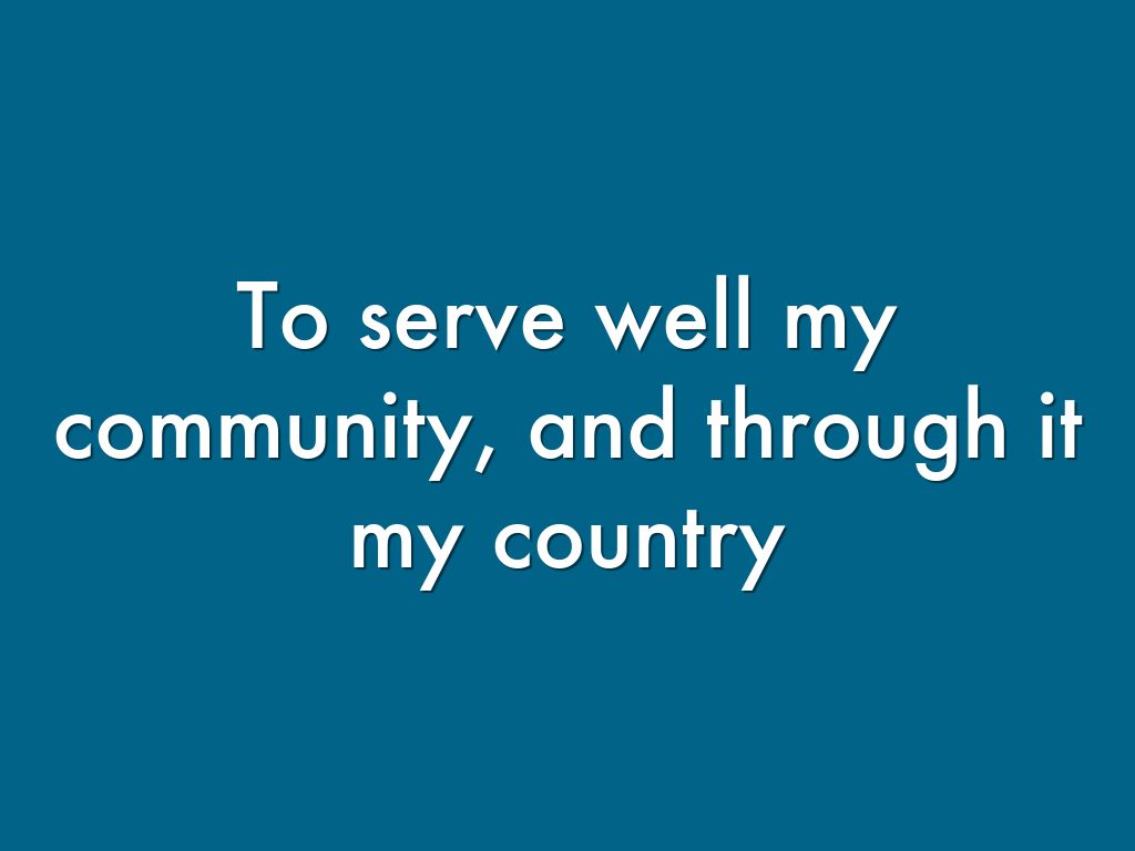 To serve well my community, and through it my country