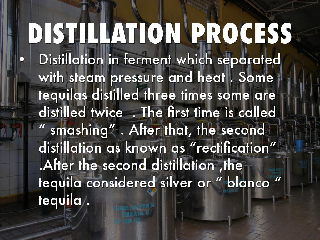 • Distillation in ferment which separated with steam pressure and heat . Some tequilas distilled three times some are distilled twice . The first time is called “ smashing” . After that, the second distillation as known as “rectification” .After the second distillation ,the tequila considered silver or “ blanco “ tequila .