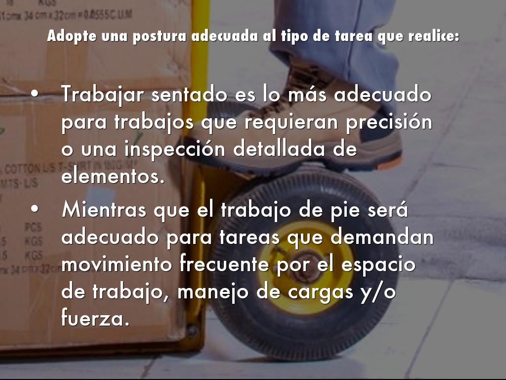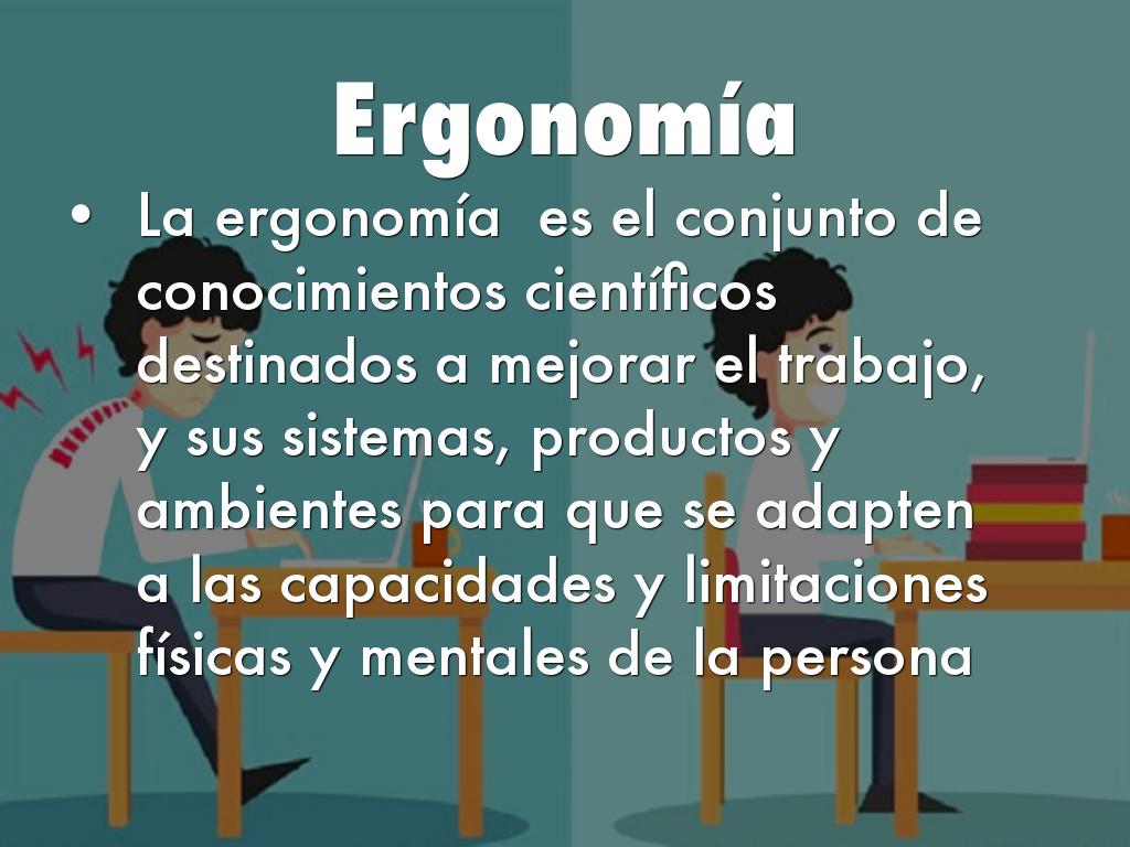 La ergonomía es el conjunto de conocimientos científicos destinados a mejorar el trabajo, y sus sistemas, productos y ambientes para que se adapten a las capacidades y limitaciones físicas y mentales de la persona