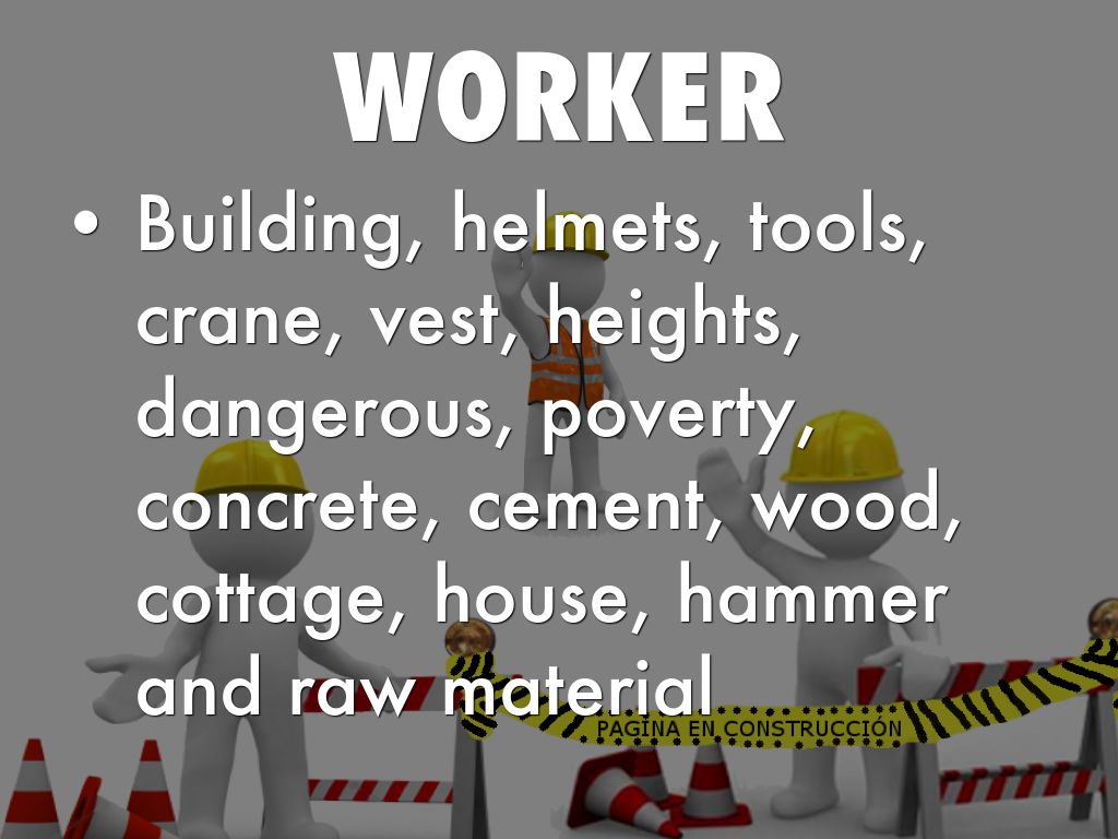 Building, helmets, tools, crane, vest, heights, dangerous, poverty, concrete, cement, wood, cottage, house, hammer and raw material