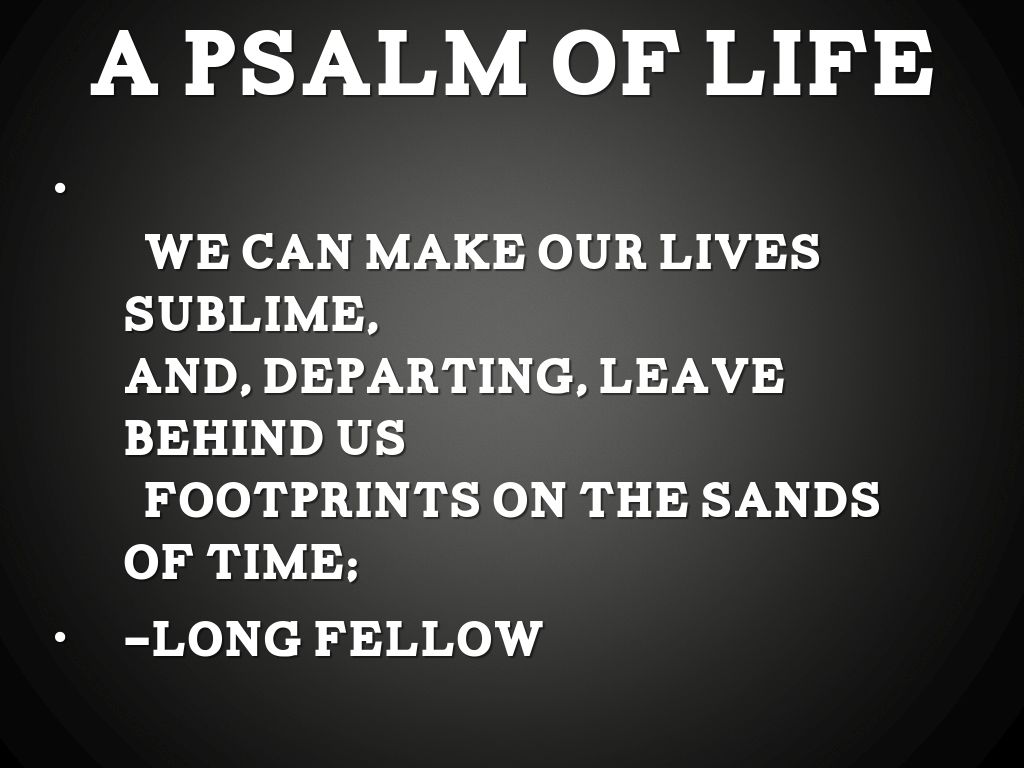 We can make our lives sublime, And, departing, leave behind us Footprints on the sands of time;"