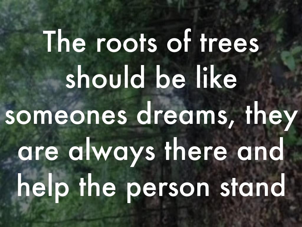 The roots of trees should be like someones dreams, they are always there and help the person stand