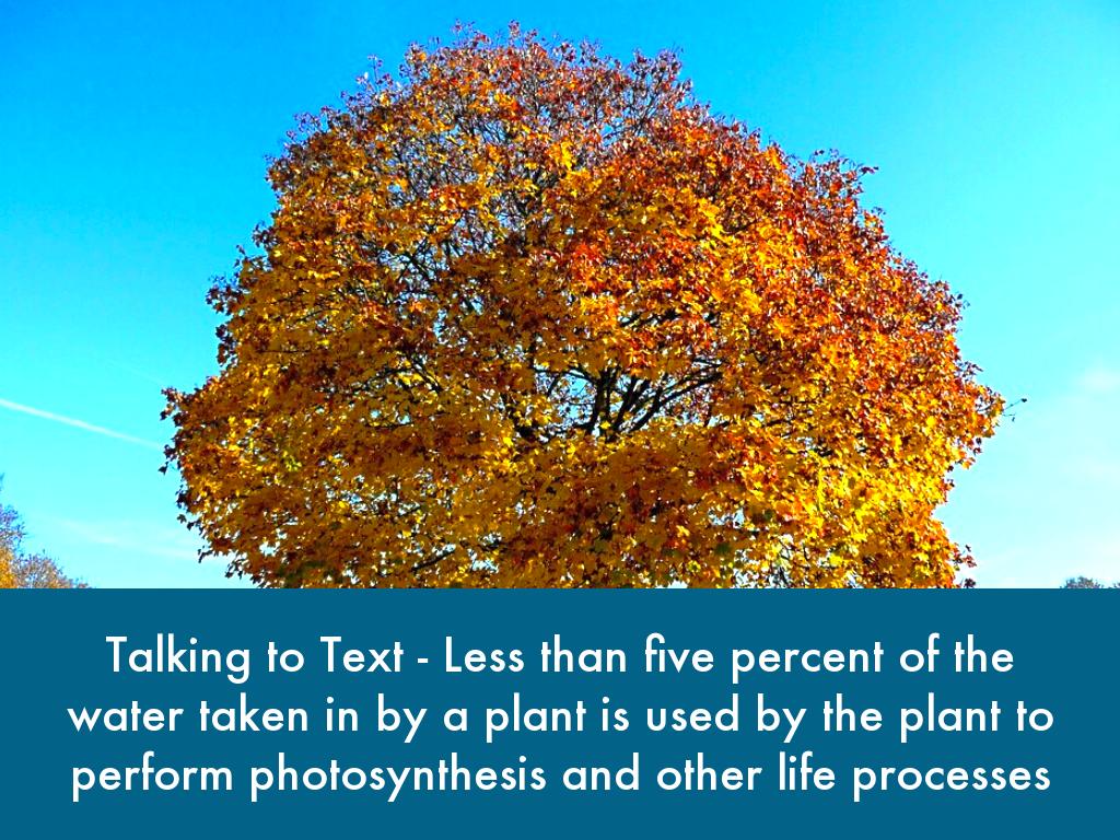 Talking to Text - Less than five percent of the water taken in by a plant is used by the plant to perform photosynthesis and other life processes