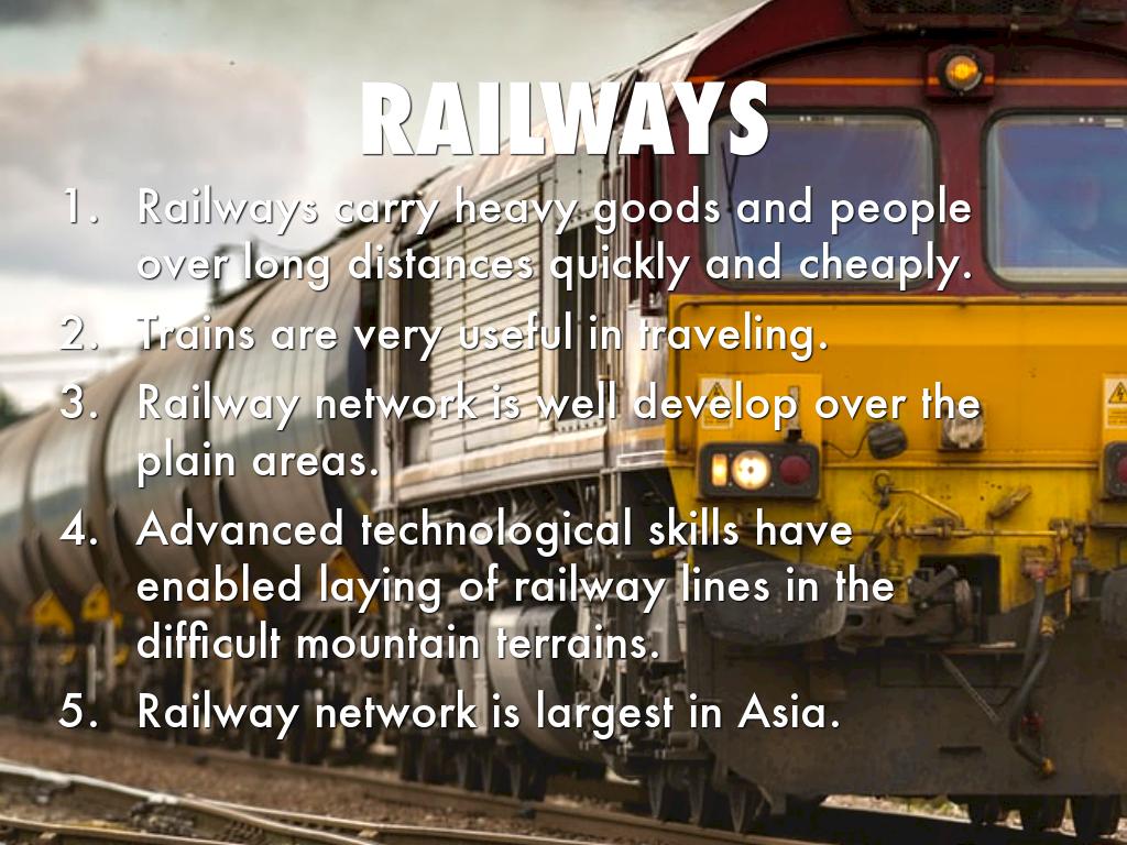 Railways carry heavy goods and people over long distances quickly and cheaply.