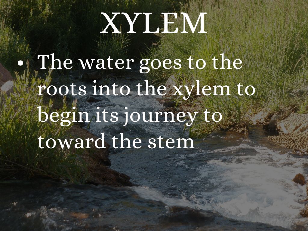 The water goes to the roots into the xylem to begin its journey to toward the stem