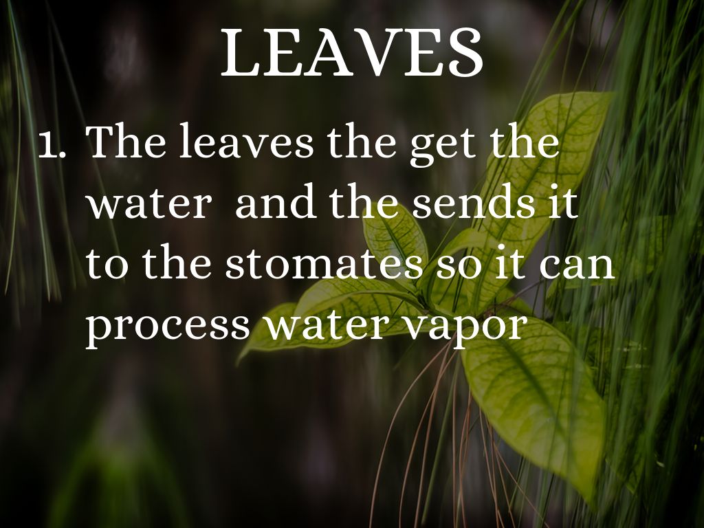 The leaves the get the water and the sends it to the stomates so it can process water vapor