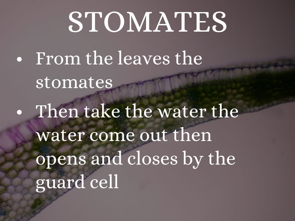 The guard cell control the stomates and releases the water vapor so it can evaporate