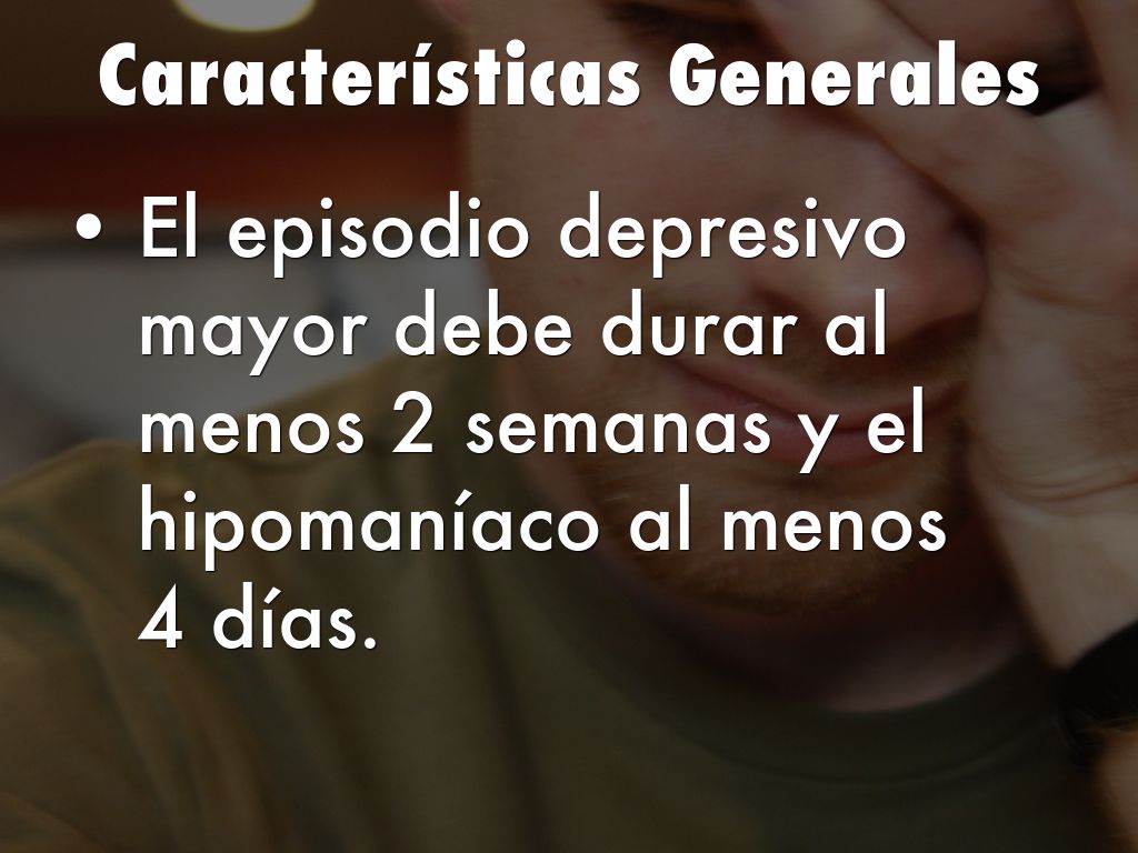 El episodio depresivo mayor debe durar al menos 2 semanas y el hipomaníaco al menos 4 días.