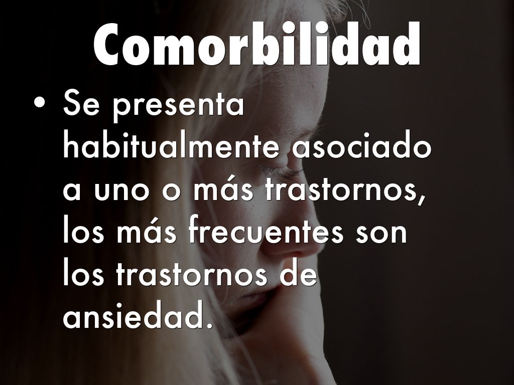 Se presenta habitualmente asociado a uno o más trastornos, los más frecuentes son los trastornos de ansiedad.