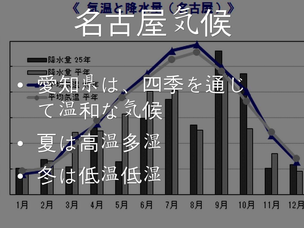 - 愛知県は、四季を通じて温和な気候