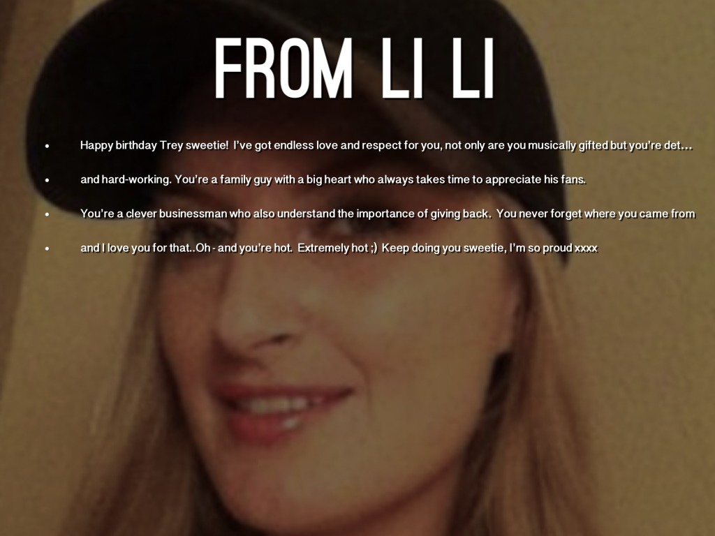 - Happy birthday Trey sweetie! Iβve got endless love and respect for you, not only are you musically gifted but youβre determine