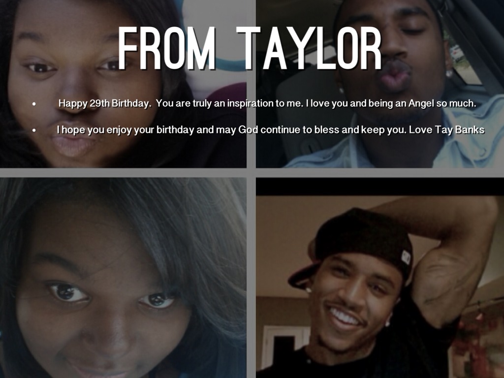 - I hope you enjoy your birthday and may God continue to bless and keep you. Love Tay Banks