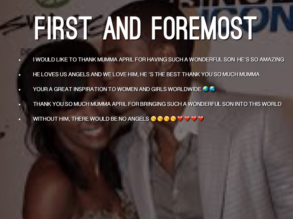 - I WOULD LIKE TO THANK MUMMA APRIL FOR HAVING SUCH A WONDERFUL SON HE'S SO AMAZING