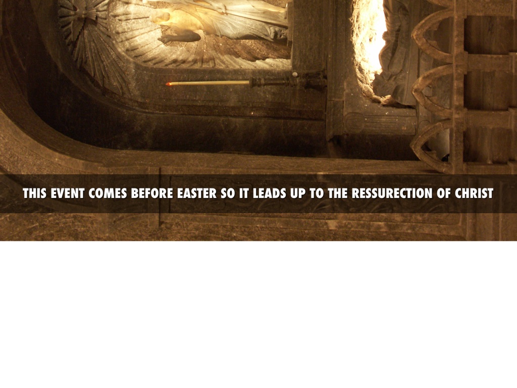 THIS EVENT COMES BEFORE EASTER SO IT LEADS UP TO THE RESSURECTION OF CHRIST