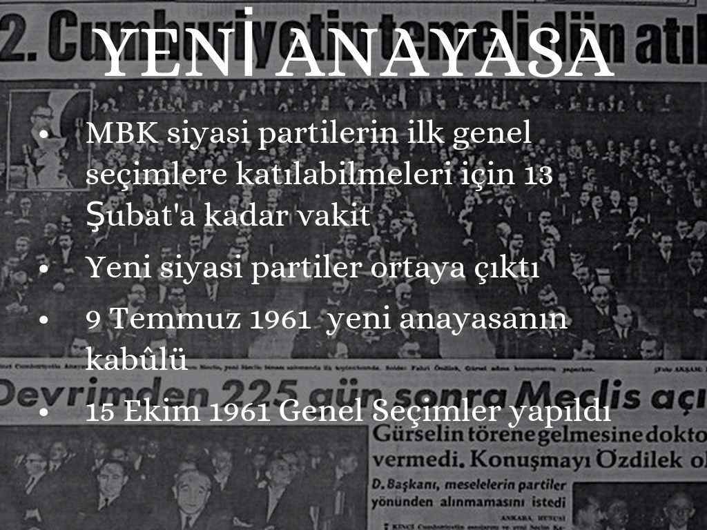 9 Temmuz 1961 yeni anayasanın kabûlü