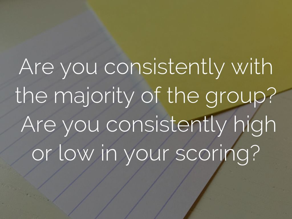 Are you consistently with the majority of the group? Are you consistently high or low in your scoring?