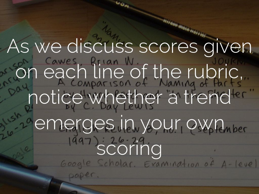 As we discuss scores given on each line of the rubric, notice whether a trend emerges in your own scoring