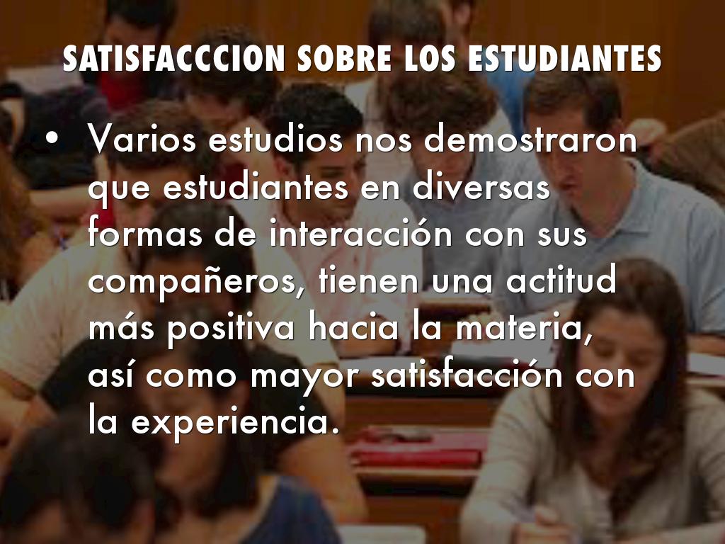 - Varios estudios nos demostraron que estudiantes en diversas formas de interacción con sus compañeros, tienen una actitud más positiva hacia la materia, así como mayor satisfacción con la experiencia.